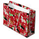Niedliche Corgi-Hunde mit Brauntöne, Rot- und Tri-Fellfarben in festlichen Urlaubssoutiquen, Weihnachtsmannmützen und Raute-Pullover mit verstreuten Weihnachtsschmuckmustern.