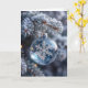 A delicate glass ornament with a snowflake design hangs on a frosty pine branch, while glowing lights in the background create a festive atmosphere