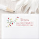 This design features a Christmas holiday return address label, a cute colorful string of lights, a whimsical festive fun merry, a stylish trendy calligraphy script, a red green blue yellow colors, a simple minimalist trendy funny, a Christmas holiday mailing supplies, a classic simplistic creative fun artwork, a simple creative bright colors, a Christmas holiday mailing labels