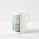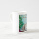 This mug features a drawing of a deer peaking through a winter window with a Christmas tree.