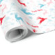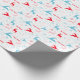 Niedliches und modernes Weihnachtsverpackungspapier mit einem Weihnachtswischmuster in Blau, Rot und Rosa auf weißem Hintergrund im schlichten nordischen Stil. Personalisieren Sie den Text einfach. Kate Eden Art