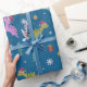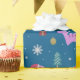 Ich hoffe, Ihnen gefällt dieser blaue Hintergrund mit einem niedlichen Dinosaurier, der einen Hut aus dem Weihnachtsmann trägt.
