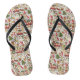 Fun flip flops decorated with a cheerful Christmas doodle pattern featuring trees, snowmen, bells, stars, stockings, mittens, gifts, and candles. A festive design that brings holiday joy to everyday wear.