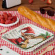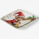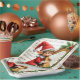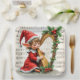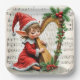 A cute Christmas sprite delicately playing a harp, set against a backdrop of beautiful sheet music
