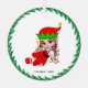 Niedlicher Weihnachtself mit einem Stern auf weißem Hintergrund. Text kann personalisiert sein.