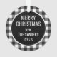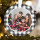 Decora tu casa con este lindo diseño navideño de adorno elegante con imagen familiar de navidad y con el texto "Merry Christmas" con fondo bufalo en colores blanco y negro la parte de atras se puede personalizar con el apellido de tu familia y el año. El diseño se personaliza con tu foto familiar favorita. Consejo de la foto: recortar la foto al formato cuadrado antes de subirla a la plantilla de diseño.No lo dude y adquiera la suya ahora.