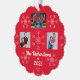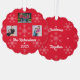 Celebrate your family’s special moments with this beautiful red Christmas photo ornament featuring delicate white snowflakes. Display up to three of your favorite family photos and personalize the text, font, and color to make it uniquely yours. Perfect as a keepsake or gift, this custom ornament captures the warmth of togetherness for the holiday season. Available in your choice of snowflake or scalloped circle shape. Add your own photos and family name to create a one-of-a-kind decoration that will be treasured year after year.