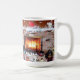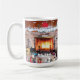 A beautiful fireplace decorated for the holidays brings a touch of elegance to this designer mug