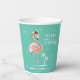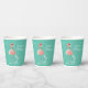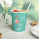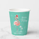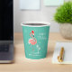 Inspiriertes Design aus der Mitte des Jahrhunderts mit einem festlich rosa Flamingo mit roter Weihnachtsmannmütze, Stars und Palmen, die mit Baubles Set vor einem Aquahintergrund verziert sind. Ein individuell anpassbares Design für Sie, um mit Ihrem eigenen Text, Bildern und Ideen zu personalisieren. Ein originelles digitales Kunstbild von Quirky Chic.