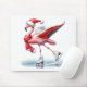 Rosa Flamingo-Skate auf Eis mit roter Weihnachtsmannmütze und passendem Schal