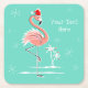 Stilvolles Design mit einer Retro-Touch mit einem festlich rosa Flamingo mit roter Weihnachtsmannmütze, Stars und Palmen, die mit Baubles Set vor einem Aquahintergrund verziert sind. Ein individuell anpassbares Design für Sie, um mit Ihrem eigenen Text, Bildern und Ideen zu personalisieren. Ein originelles digitales Kunstbild von Quirky Chic.