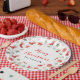This elegant and festive plate features a watercolor ice skating boot, red poinsettia flowers, holly berries and foliage. The text combines handwritten script and sans serif fonts for a stylish and modern look. This is perfect for Christmas parties.