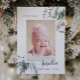 Elegante und skurrile Geburtsankündigungskarte mit Aquarellbild der Winterbotanikale rund um den Rahmen. Sie können ein zweites Bild auf der Rückseite mit Ihrer Nachricht hinzufügen. Perfekte Karte für Weihnachten.