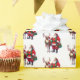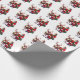 Wrapping paper is shown in a festive Santa and reindeer print.