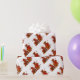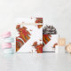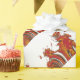 Die zwei Spirituosen der Weihnachten, des Friedens und des guten Willens. Ein abstraktes Kunstdesign in Rot und Gold vor schneebedecktem Hintergrund.