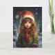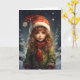 Niedliche Mädchenelf im Schnee mit rotem Hut und Schal