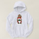 Ein niedliches Weihnachtsbrunnen in Rot, Grün und Weiß hält eine Tasse heiße Schokolade.