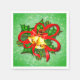 Christmas Gold Bells Green Holly Red Ribbon Serviette