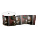 A Hereford cow and her calf stand at the entrance of a red, rustic barn, decorated with a green pine wreath and red bow