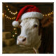 Christmas Hereford Cow Wearing a Santa Hat Poster