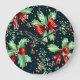 Christmas Holly Berry Pattern Große Wanduhr