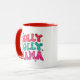 Weihnachten Holly Jolly Mama Modernes Glitzer Script Tee Kaffeemübel enthält den Text "Holly Jolly Mama" in farbenfrohen modernen Glitzer in rot, grün und rosa. Ideal für Geschenke für Weihnachten und Feiertage. Entworfen von ©Evco Holidays www.zazzle.com/store/evcoholidays