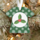 Dieser Weihnachtsschmuck zeigt einen Heiligen, umgeben von einem Muster von Schneeflocken auf grünem Hintergrund. Es ist eine schöne Ergänzung zu Ihren Weihnachtsdekorationen.