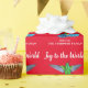 Weihnachten wird mit diesem genialen, grün gekrönten Hummingvogel Spaß machen, mit breiten offenen Flügeln, die die Herrlichkeit seiner glänzenden blauen und grünen Federn zeigen, Set vor einem urlaubserregenden roten Hintergrund, mit "Joy to the World" über ihm in der modernen weißen Typografie geschrieben. Sie können mit einer Signaturzeile und Ihrem Namen personalisieren. Ideal für Vogelbeobachter, Natur- und Gartenliebhaber. Foto in Costa Rica aufgenommen.