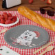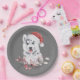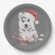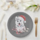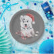 Husky Hund mit Weihnachten Weihnachtsmann hat in Schneeflocken auf grauem Hintergrund. Die Hintergrundfarbe kann geändert werden.