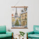 Christmas in Paris Wall Tapestry – Watercolor Eiffel Tower Scene | Wood Topped Art Decor