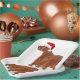 Irish Setter Hund im Schnee mit Weihnachtsmannmütze.