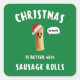 CHRISTMAS IST BESSER MIT SAUSAGE ROLLS QUADRATISCHER AUFKLEBER