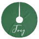 Mit diesem Weihnachts-Joy Emerald Green Script Typografy aus gebürstetem Polyester-Tree-Skirt können Sie Ihren Weihnachtsbaum ganz oben. Es ist mit anpassbarem dunkelgrünem Hintergrund konzipiert. Der Text ist "Joy" in weißen Schriftzeichen. Ideal für einen minimalistischen Urlaubsstil.