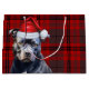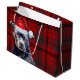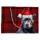 Hundeliebhaber werden diese niedliche Weihnachtsgeschenktüte mit einem stilvollen Bluenose Pit Bull Hund auf einem roten und grauen kariert für einen gemusterten Urlaub genießen.