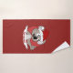 Customizable Bath Towel with illustration of a head of cute little koala with Santa's hat; great decoration for Christmas holidays, editable template design with custom field for your own text, illustrated by Radka Kavalcova