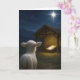 A gentle little lamb gazing lovingly at baby Jesus in a manger, all beneath the glow of a brilliant star.