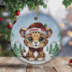 Christmas Leopard Spots Kitty Cat Lovers ceramic ornament featuring a fun cute Xmas cartoon graphic with personalizable santa hats. Customize by changing the name. Perfect customizable gift for any wild baby feline enthusiast or Woodland Wildlife animal print fan. Two sided Kitten design ensures your tree always looks festive & complete. Add a unique touch & holiday spirit cheer to your décor with this custom one-of-a-kind, purr-fect winter season keepsake! 🐆🐈🐾