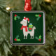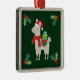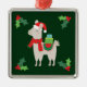 Dieses hochwertige quadratische Ornament besticht durch ein Weihnachtsdesign mit einem Lama, das einen Winterhut und Schal trägt, der in den Ecken Geschenke auf dem Rücken, heilige Blätter und rote Beeren trägt.
