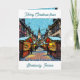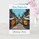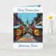A personalized Christmas card with a cartoon depiction of the Strasbourg, France Christmas market. On the inside is a holiday poem that gives homage to Strasbourg that you can leave or edit and add your names.