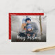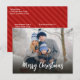 Dieses schlichte minimalistische Fotokartendesign zeichnet sich durch ein schlichtes 1-Foto-Weihnachtsschmuck aus, einen minimalistisch-klassischen Stil, handgeschriebene Schriftkalligraphie, fröhliche Weihnachtsschrifttypografie, schlicht und minimalistisch, mit modernem Kalligraphieskript-Schriftart, modernem, elegantem Stil, weißem Texteüberlagerungen, einfache Weihnachts-Foto-Postkarten aus
