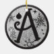 Christmas Monogram Letter A Black Silver Glitzer Keramik Ornament