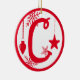 Weihnachten Thema, monogramm Buchstaben C, in rot auf einem weißen Hintergrund. Weiß und rot können durch Anklicken des Links 'Weitere Anpassung' geändert werden. Niedlicher Buchstabe C mit Schneeflocken, Sternbauble und einem Saitenlicht.