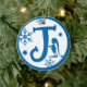 Christmas Monogram Letter J Blue White Keramik Ornament