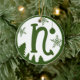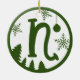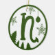 Weihnachten Thema, monogramm Buchstabe N, in grün auf einem weißen Hintergrund. Grün und Weiß können geändert werden, indem Sie auf den Link "Weitere Anpassung" klicken. Niedlicher Buchstabe N mit Schneeflocke und Kiefern.