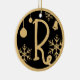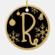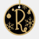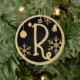 Christmas Monogram Letter R Gold Black Keramik Ornament