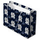Christmas Navy Bow Velvet Pattern Große Geschenktüte