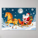 Christmas, New Year, Red Horse, Santa & White Cat Poster