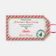 Celebrate a child's good behavior with this "Santa's Nice List Certificate" gift tag. Featuring a playful candy cane stripe border and a playful seal from the North Pole, it's a delightful way to mark presents. The clear message, "Approved by the elves at the Noth Pole," adds an authentic touch from Santa's workshop. This unique tag is sure to bring smiles and excitement on Christmas morning, making each gift feel even more magical.