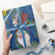 Farbenfrohe, skurrile und künstlerische Acrylmalerei für Weihnachten. Weihnachtsmann, schneebedeckte Winternacht mit blumengeschmückten Ornamenten, grüne dekorative Pflanze, rote Bänder, heilige Beeren, Pilze, Puppen und Spielzeug von Bulgan Lumini (c)