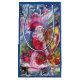 Farbenfrohe, skurrile und künstlerische Acrylmalerei ,Santa spielt Harfe im Mondschein ,eine Eule,Blumenschmuck,Winterspielzeug,Kinderspielzeug,Heilige Beeren in kräftigen Rot-, Grün-, Weiß-, Blau- und Gelbtönen. von Bulgan Lumini (c)